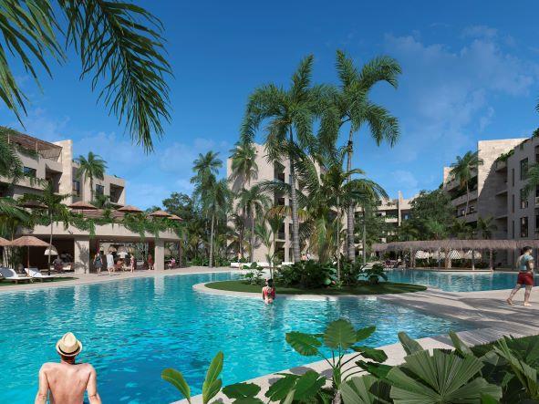 This exuberant development is ideally located in the heart of the tourist town of Bavaro, just a very short walk from the Cortecito (Bavaro) beach. This generous sized community construction is well underway on 50,000 m2 / 538,000 sq. ft. of premium land by the beach. This community thought of everything. Owners and / or their vacation rental guests can enjoy a full commercial and recreational area just steps away. The commercial area is already built, and shop owners are already moving in.